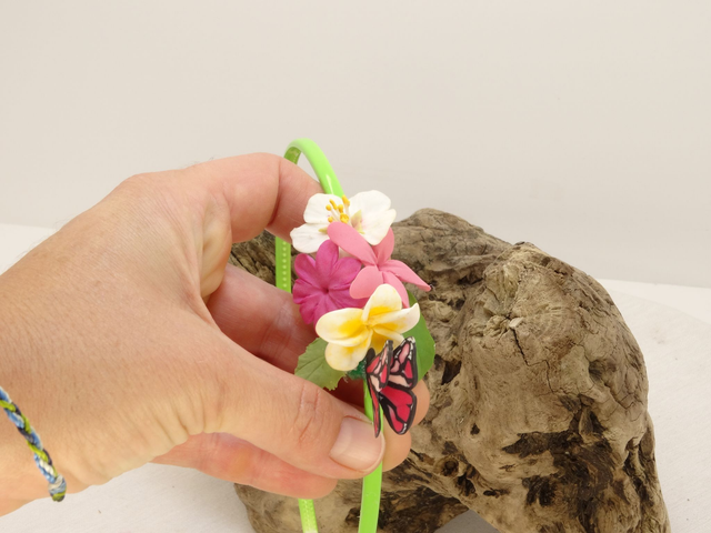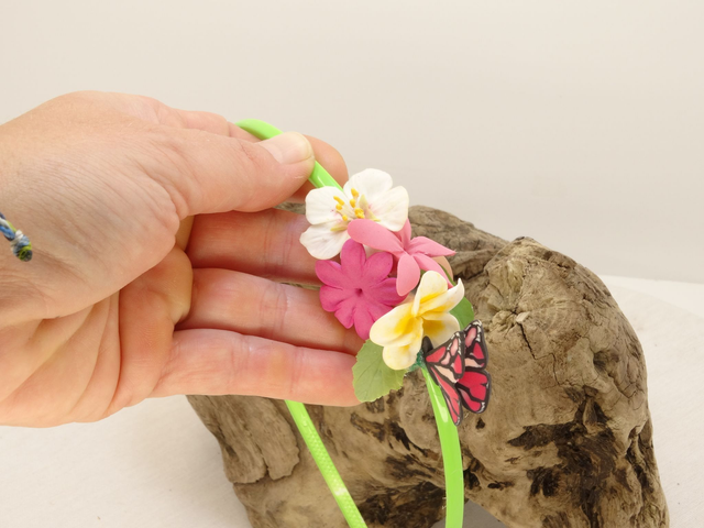 Diadema de flores y mariposa