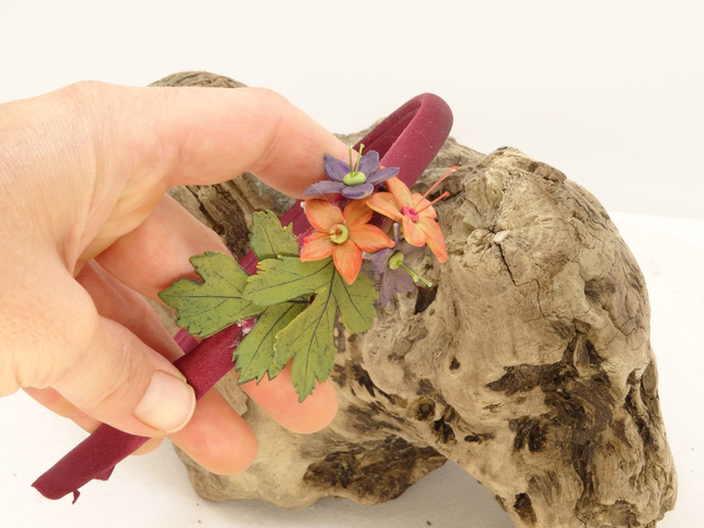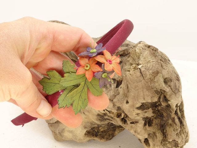 Diadema hecha completamente a mano con tonos otoñales y decoración modelada en arcilla polimérica y porcelana fría flexible. Si te gusta el otoño, esta diadema es un complemento perfecto para tu estilo.
