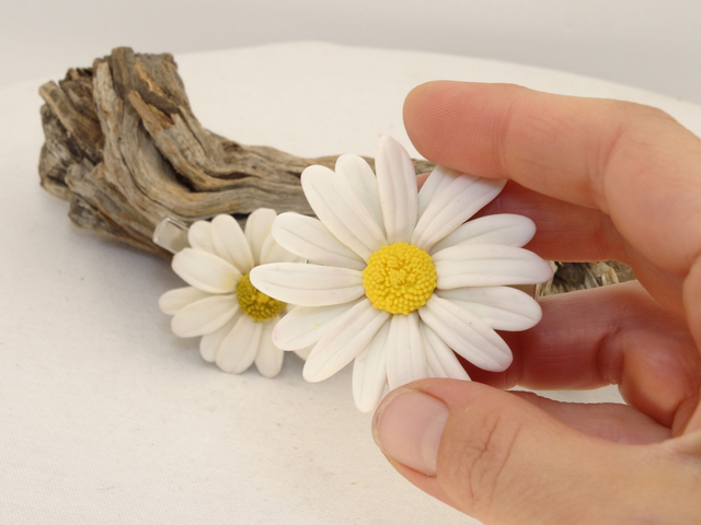 Horquilla floral modelada en porcelana fría flexible. Precioso complemento boho para poner la guinda en tu outfit. Quedan genial sujetando un lado del cabello.