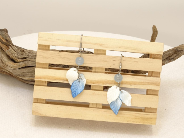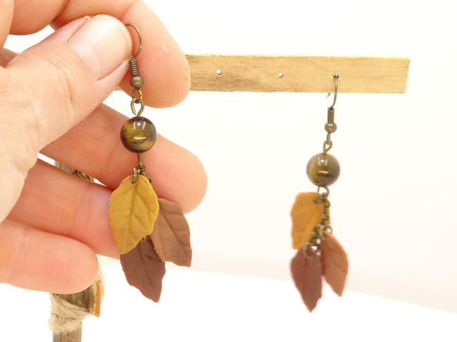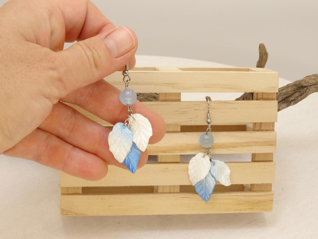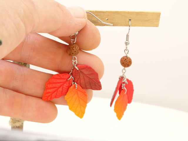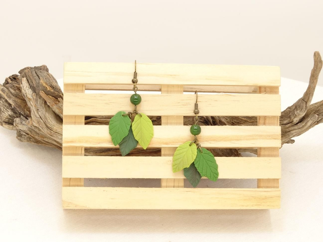 Pendientes con tres hojas modeladas en arcilla polímerica y decorados con una cuenta a juego. Unos pendientes muy favorecedores, perfectos tanto para el día a día como para un look especial. Disponibles en varios colores, pero también se pueden hacer de los tonos que tú quieras!