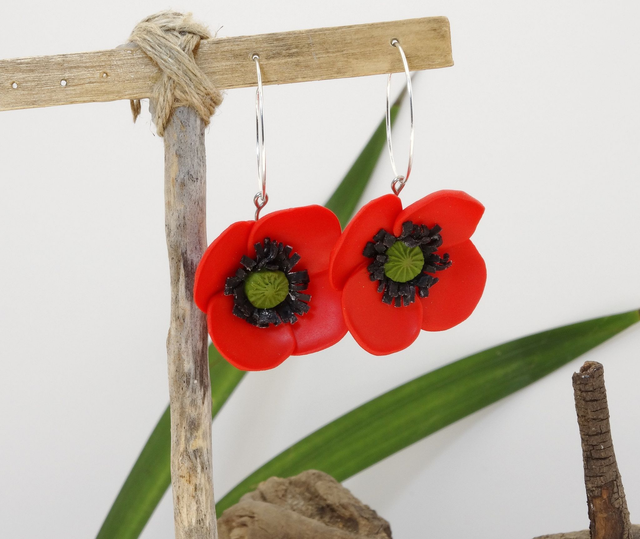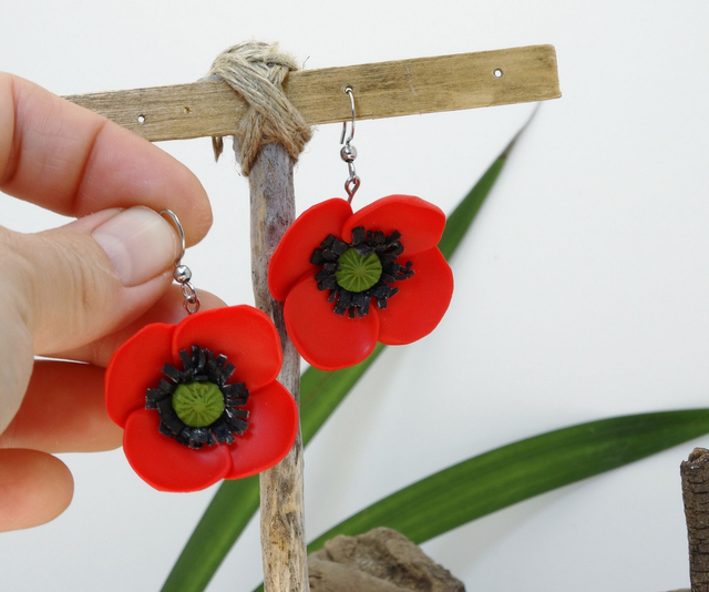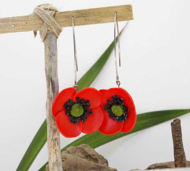 Pendientes de amapolas realistas